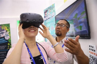 千龙网讯 近日,在由农业部主办的第十五届中国国际农产品交易会上,在北京展区,记者发现了一个好玩互动的体验:VR技术造就“穿越式农场”,吸引了众多市民围观和参与。