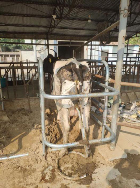近日,记者与北京市畜牧业环境监测站相关负责人一同来到北京市房山区某奶牛场,实地了解当地的一家养殖场正在开展的产排污原位监测工作。原位监测现场,10多头奶牛在被限位饲养在特定的栏位内。据北京市畜牧业环境监测站的工作人员介绍,由于原位监测需要针对不同畜种、不同阶段在一年不同季节的粪尿产生量进行持续监测,四个畜种之间饲养方式差别较大,因此必须既要考虑到尽量减少对动物正常生理活动的影响,满足精确测量的要求,还需要便于拆卸、持续分季节监测。