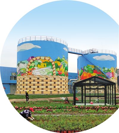 “百蔬园”户外东侧有两座由功能性储能罐改造而成的艺术建筑,由中央美院的艺术家团队历时3个月设计、十几人纯手绘完成。巧妙将罐体变为菜篮,加上手绘蔬菜,塑造出一组3D立体菜篮的大地艺术景观效果,是“百蔬园”最佳拍照打卡地之一。