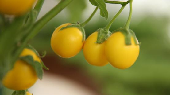 专家李新旭指着头顶上挂满了红色小番茄的绿枝介绍,这是一株巨型番茄树,覆盖40平方米左右的面积,不远处的大花盆中装满了营养液,番茄树的主干就是从那里伸展开来。可别小看了它,这可是现代农业科技集成的结晶。百蔬园展馆中共打造了两棵番茄树景观,采用无限生长型番茄品种,一个大型果一个小型果两个品种。番茄树以营养液水培的模式进行栽培,通过整枝修剪及营养调控和环境调控技术使番茄长为树状,一般种植当年即可结果,单株水平展幅可达到8—10米,株高可通过人为调整达到2.3—2.6米,从定植到拉秧小型果品种单株年结果可达20000个以上,中型果品种可达10000个以上,充分展示了蔬菜的高产潜力。同时番茄还具有美容防衰老、清热解毒、降血压等效果,非常适宜高强度工作的年轻人和中老年人食用。
