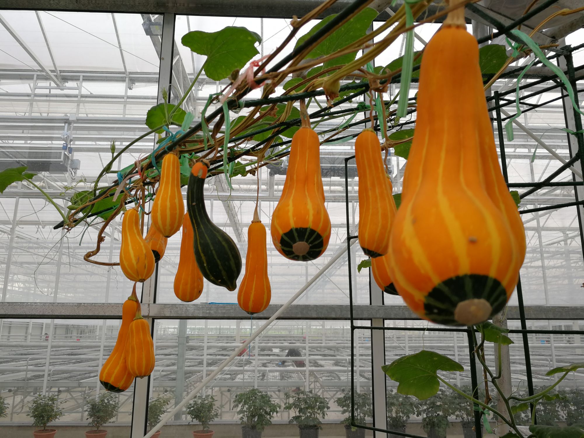 百蔬园以“创‘艺’农场 乐享家园”为理念,园区内展示的上百个品种、数万盆的各色蔬菜不仅仅展现的是蔬菜的景观效果和艺术布局,更是充分的发挥了蔬菜种类的多样性和实用性。本次活动开始之际,正迎来百蔬园夏季大‘换妆’,从蔬菜品类、拼接形式、展示手段上均有科技突破与创新。在室外,甘蓝、生菜等叶菜“仙子”已经退场,番茄、茄子、辣椒等“耐晒”的茄果“佳丽”成为“主打牌”。双色苋菜、紫色皱叶紫苏、五彩椒、鸡蛋茄、红茄等观赏品种,适宜廊架景观使用的白葫芦、玩具南瓜、黄多翅、木耳菜等品种,形态各异,多姿多彩。他们都是北京市农业农村局历时两年筛选培育出的耐晒、耐高温、观赏效果好、观赏时间长的“勇士”,在炎炎夏日为游客带来一份清爽,呈上一场蔬菜园艺的盛宴。在室内,不同于室外,玻璃温室内的智慧管家,智能调节温室内部的光照、温室、湿度、二氧化碳气体含量等因素,为各类蔬菜提供良好的生长环境。不仅如此,为了让游客了解到更多的蔬菜科技,看到更美的蔬菜景观,蔬菜专家利用无土栽培、水肥一体化、智能光源等先进的农业技术栽培不同的蔬菜品种,创意搭建了悬挂盆栽蔬菜、磁悬浮垒土蔬菜、蔬菜植物工厂等特色造型景观,让游客大饱眼福。