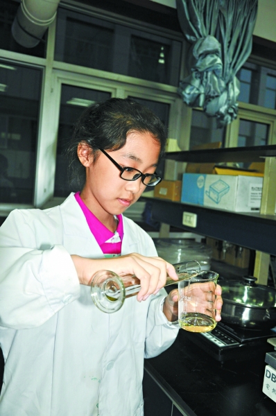 西城区展览路第一小学郭可欣同学就是“小眼镜”中的一员,她听说药材枸杞可以“明目”,便一直在思考怎样更好地食用枸杞。经反复试验,最终她制成了含有玉米黄素的冷餐油,这种新的食用方法,可以促进对脂溶性营养素的吸收,充分发挥枸杞中脂溶性营养素的作用。