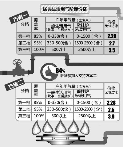 由于第二套方案的第二档价位相对更低,多位听证参加人认为,这套方案更能保障绝大多数人的利益,使大多数居民的用气成本降到最低,且更贴近低收入人群。