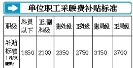 具体到每位职工补贴多少钱,李楠介绍说,本市采取按照行政级别确定补贴标准的方式,根据政府机关、事业单位不同职级职工所享受的住房控制面积标准、本市居民采暖价格,并综合考虑平均住房面积及家庭就业人数等因素,确定了采暖补贴标准。正、副科级补贴标准是2100元/采暖季,副处级2350元/采暖季,正处级2750元/采暖季,副局级3150元/采暖季,正局级3700元/采暖季。