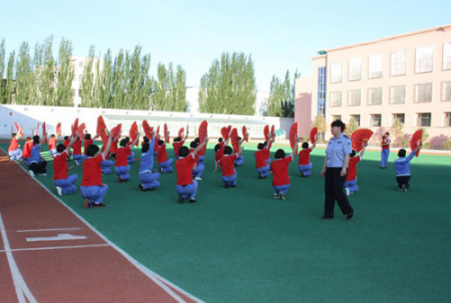2015年6月13日,在内蒙古女子强制隔离戒毒所里,戒毒人员在跳扇子舞。新华社记者 邵琨 摄