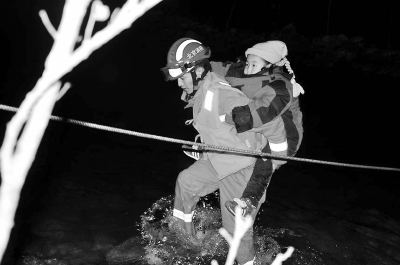 近日,一对父女到门头沟雁翅镇一处河上看冰,因没注意上游大坝放水,被困河中孤岛,门头沟消防支队斋堂中队接到指挥中心命令后,立即出动一辆抢险救援车、7名指战员赶往现场,经过两个多小时的救援,将二人安全救回岸边。斋堂中队供图
