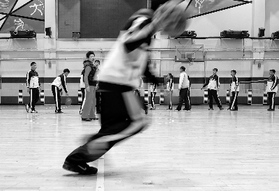 上午,北京24中的同学们在室内上体育课 摄/记者 柴程