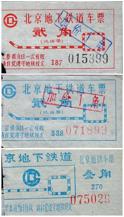 ■1987年12月19日,北京地铁环线建成通车后,一线及环线两线地铁票分别定为2角。