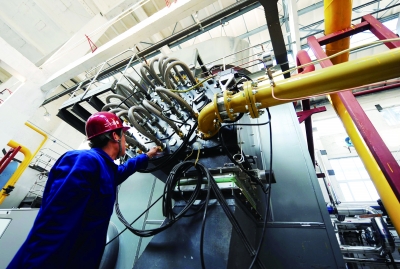 工作人员正在检查一台改造后不再烧煤的锅炉 摄/记者 柴程
