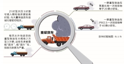 “本市打算依靠环保车辆来取代外地大货车进城的任务,保障城市生产生活用车,通过绕行北京等方法,减少重型柴油车带来的污染排放。”连爱萍说,目前本市机动车保有量已达561万辆,其中重型柴油车大概有22万辆,虽然只占机动车保有量的4%左右,但排放的氮氧化物(NOX)、颗粒物(PM)却占机动车排放总量的50%、90%以上。也就是说,一半以上的污染物是由重型柴油车排放造成的。