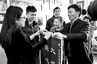 家人向帮助过大巧的郝女士和民警等人送锦旗