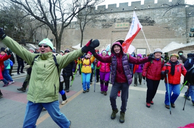 来自全国各地的2022名徒步爱好者为冬奥献上祝福 摄/记者 刘畅