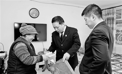 2月4日,北京市第二中级人民法院执行三庭副庭长张浩带着自己花钱买来的米、面、油、对联等生活用品,再次来到北京市通州区漷县看望李女士,并将新执行到的3000元赔偿款送到她的手中。算上今年,这已经是张浩法官连续第9个年头帮助李女士一家。