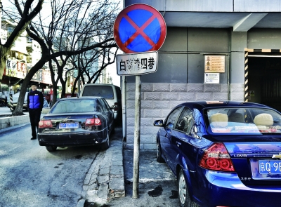 2月5日上午,记者在广安门附近发现,仍有多辆机动车违法停放的现象 摄/记者 柴程