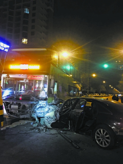 目击者王先生称,当时奥迪轿车沿着草桥东路由南向北行驶,速度很快。特8路双层公交从北面开过来,行驶到这个十字路口,准备左拐。“‘嘭’的一声巨响,我赶过去看到,奥迪车左侧车头和公交车的车头撞在一起,毁损特别严重。”王先生说。