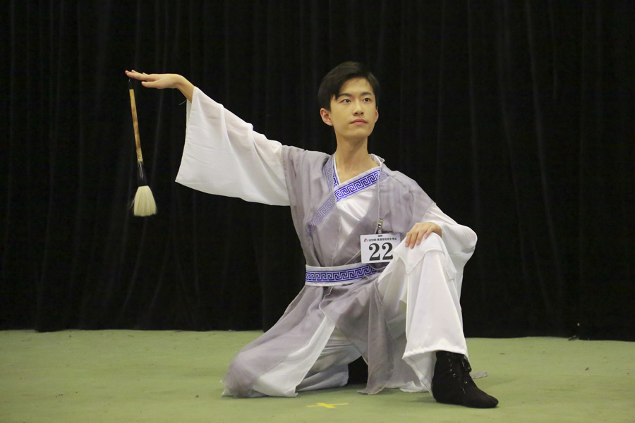 2月23日,考生在北京电影学院表演学院艺考复试考场内表演。