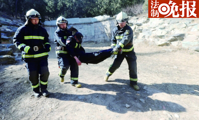 昨日,香山公园工作人员与消防人员一起举行了消防演习