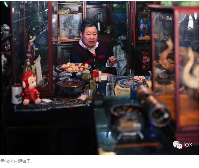二条杂货铺。聊聊天去吧,孟叔的“超脱”咱这笔下能写出的,不过九牛一毛。如果看上什么,悄悄告诉您,别着急,先去买绿牛二、花生米,找他聊半天儿。酒到三巡,聊高兴了……后面您懂的。