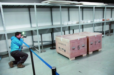 记者经过安检,并逐一签写进入时间方可进入库房。前往库房前的一段路,记者被要求不能拍照,以保证文物库房的“神秘性”。