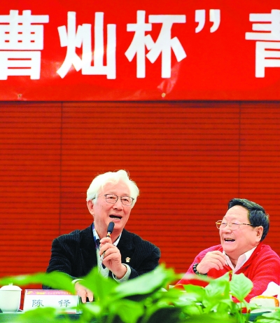 第二届“曹灿杯”青少年朗诵大赛研讨会28日在京举行。朗诵艺术家曹灿、陈铎、虹云与北京小学校长李明新等26所京城中小学校长共同研讨朗诵对于中小学语文教学的价值。 本报记者 阎彤摄