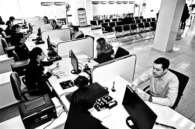 昨日上午,北京青年报记者来到海淀区双榆树北里甲22号院发现,针对中关村外籍高层次人才开设的办事大厅已经开始对外开放。在办事大厅的入口两侧,分别悬挂着“公安部中关村外国人永久居留服务大厅”和“北京市公安局出入境管理局中关村外国人服务大厅”两块标识,不少金发碧眼的外籍人士已经在柜台前开始咨询和办理业务。