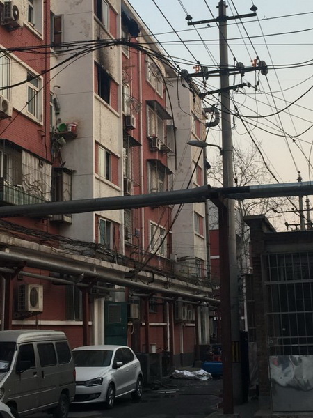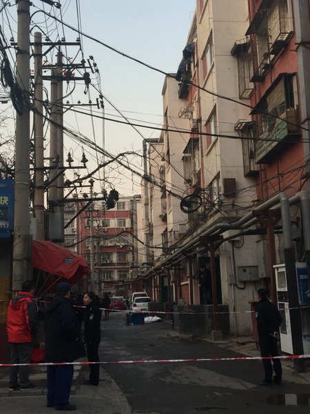 昨天(3月1日)下午4时许,西城区天宁寺东里3号楼起火。当时一名男子从5层楼道窗户处坠落,不幸当场身亡。