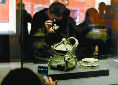 观众围在展柜前一睹2000多年前西汉墓葬中出土文物的风采。刘平摄