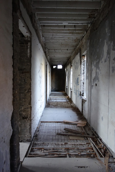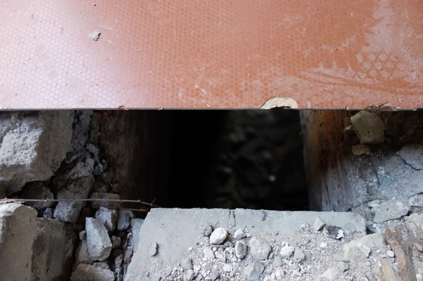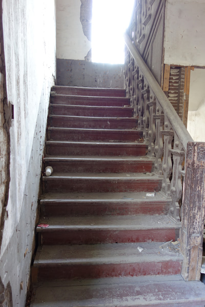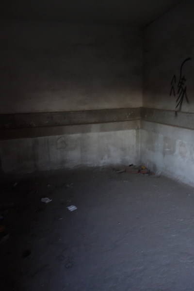 西楼里破败不堪,从一楼可以望向地下
