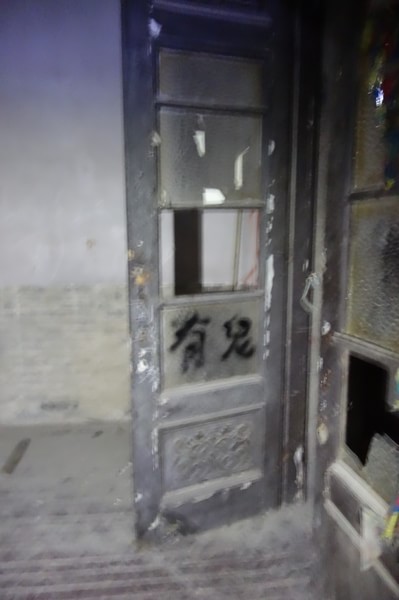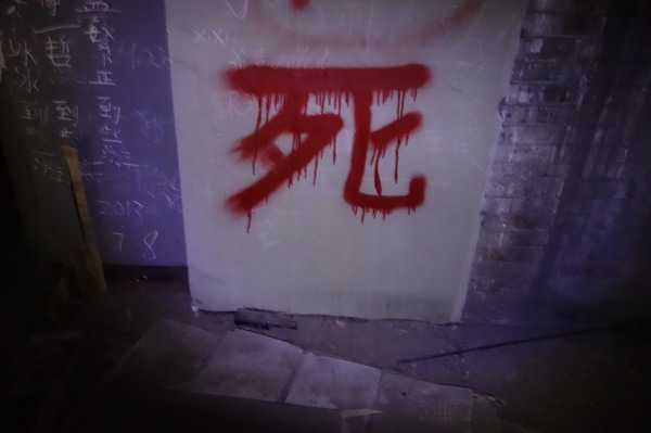 夜幕的到来衬托出东楼更加诡异的氛围。由于没有灯,伸手不见五指,只能使用手电筒照明。微弱的灯光,依稀的人影,满墙的恐怖涂鸦等等结合在一起......气氛异常凝重。(以下是夜景,小编仅挑选了一部分,慎入!)