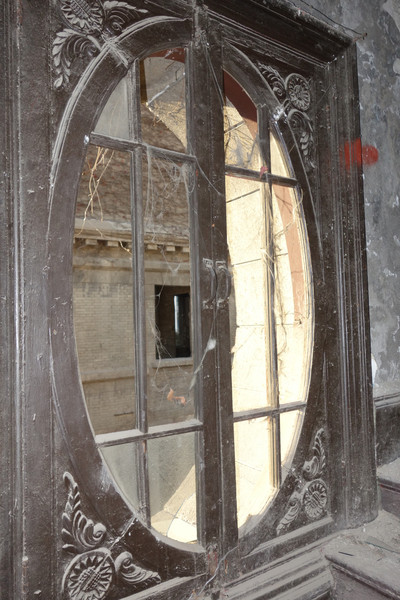 朝内大街81号楼梯边布满蜘蛛网的窗户