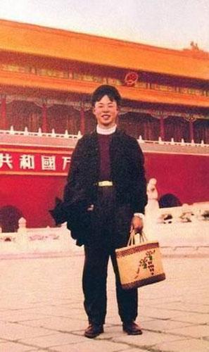 雷锋在天安门前留影,脸上洋溢着纯真的微笑。