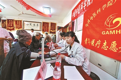 3月5日,在大兴区颐乐养老院,来自大兴卫计委医疗服务队的志愿者们正在给老人们进行常规检查,据悉,志愿者们分别来自医院、学校等。