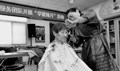 前天(5日),丰台区蒲黄榆第二社区民警刘安又带领小区的志愿者团队十余人来到社区服务站,专业按摩师为大爷大妈们揉脚捶肩,理发师则为老人们免费理发。这支“警民志愿者爱民服务团队”,是社区民警刘安成立,为了更好的帮助小区内的困难群众而成立的,至今已有14年。林靖 文并图