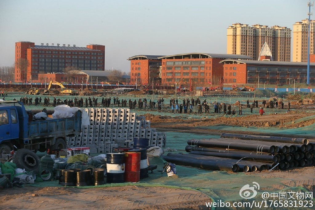 3月13日,北京行政副中心工地胡各庄村委会南边的空地里发现汉代墓葬群,工作人员正在现场勘测发掘。据考古人员讲,从发现的一些瓷器来看是汉墓,有几十座,从现场的情况来看,一些墓坑里的砖头比较凌乱,怀疑这些墓葬被盗过。现场被绿色的防护网覆盖着,保安值守,目前勘探和发掘工作还在继续。图片来源:中国文物网官方微博