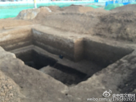 3月13日,北京行政副中心工地胡各庄村委会南边的空地里发现汉代墓葬群,工作人员正在现场勘测发掘。据考古人员讲,从发现的一些瓷器来看是汉墓,有几十座,从现场的情况来看,一些墓坑里的砖头比较凌乱,怀疑这些墓葬被盗过。现场被绿色的防护网覆盖着,保安值守,目前勘探和发掘工作还在继续。图片来源:中国文物网官方微博