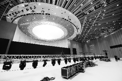 第六届北京国际电影节将于4月16日至23日在怀柔举办,工作人员正在布置开幕式场地