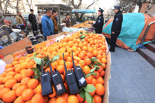 在行动中被查获的无照商贩手中,队员分别发现无线电台六部。询问中得知,这些无照经营人员均为山西人,受雇于老乡,每日他们从事无照经营时,通过派人电台盯梢联系的方式躲避执法人员检查。每次经营时,他们几乎都会选择在路口自行车道上占道经营,目的是跑的快。