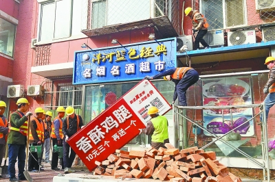 “都忍好多年了,几乎年年街道开共商共治会都会反映这个问题,因为不仅有安全隐患,而且这些‘开墙打洞’的底商特别扰民,提起来就堵心。”在执法现场,家住3号楼的市民李先生告诉记者,“别看这栋楼只有8户这样的底商,可干什么的都有,尤其最让人受不了的是美容美发店的噪音污染,还有小食品店里的蟑螂,我们这儿本来就是老旧小区,一家有蟑螂,就窜的哪都是。”