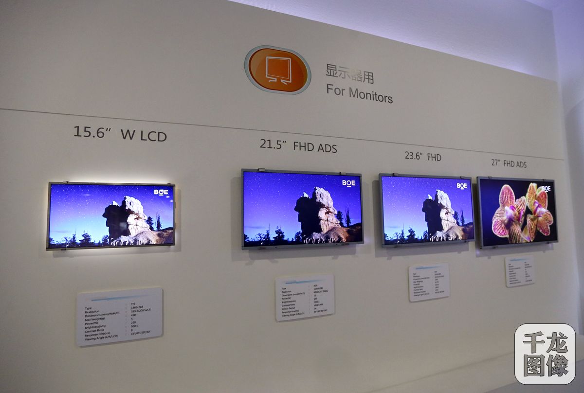 2015年第四季度京东方电视面板的市场占有率升至全球第二。图为展示的显示器及电视面板(3月18日摄)。千龙网记者 戚连民摄