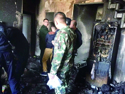 昨天晚上9点左右,记者在事发现场看到,发生火灾的房间已被警戒线封锁,白色的防盗门已经变形,门框周围有烧焦的痕迹。