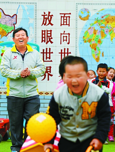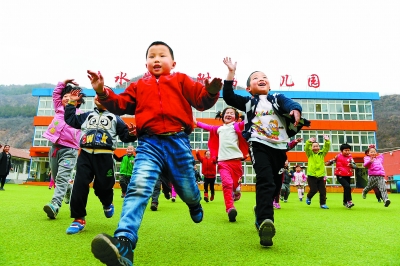 走进幼儿园,立刻被孩子们的笑声拉入欢乐的海洋,来自周边30多个村的孩子们在操场上尽情地玩耍。