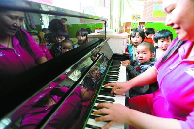 叮叮咚咚的钢琴乐曲响起,令这些从未摸过钢琴的山里孩子非常好奇。