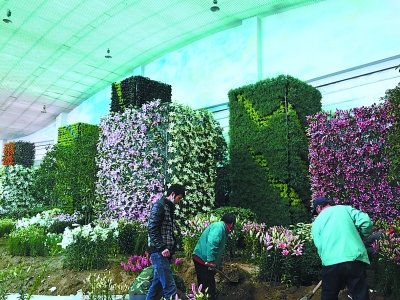 今天,工作人员正在为“郁金香文化节”布置百合展厅。