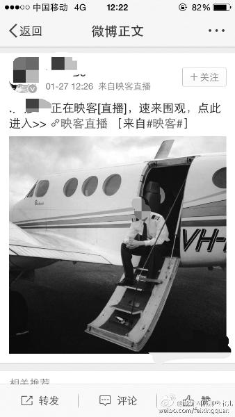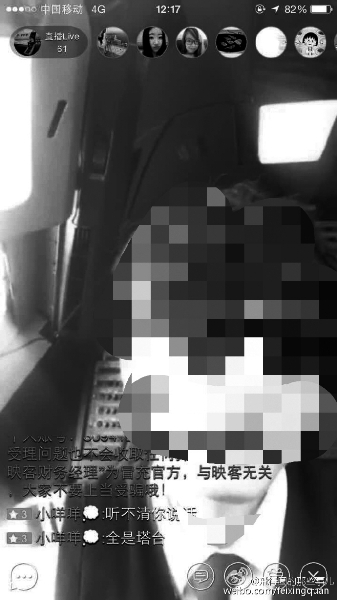 根据“飞行圈的那些事儿”曝光的截图,记者发现此次曝光的直播发生在1月27日,直播平台为映客。