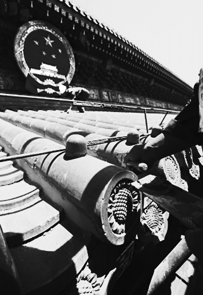 杨贺林记得,1968年接到为天安门翻修工程搭席棚的任务时,自己就在月坛附近跟其他师傅一起做试验,用小竹坯子反复搭建席棚模型。时隔多年后,杨贺林坦言:“当时我心里也没底,有点儿发毛,那么大的跨度,那么高的棚子,开始有人试着搭建了一个模型,但是基本一撒手就塌了。”