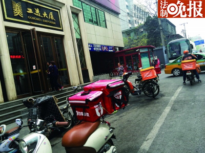 不过,法制晚报(微信ID:fzwb_52165216)记者也发现了不少选择步行的送餐员,他们选择将车停在东方广场东单大街一侧,然后背着箱子步行前往东方广场。