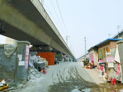 京津城际桥下 有房屋紧挨桥墩