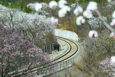 近日,因为有些摄影发烧友和游客,为了拍照频频逼停被誉为“开往春天的列车”S2线列车,居庸关附近山道已经封闭,为了保障广大旅客的安全,北京铁路警方加强了对该条线路安全巡逻力度,确保旅客、列车安全,同时,铁路民警还设定了几个拍摄点,引导上山游客文明拍照。图为铁警正在最重要的三公里路段上往来巡逻。通讯员 庞贺雷 李飞非 摄