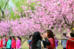 起拍价3万元,落槌价60万元——北京植物园培育的一株桃花卖出高价。“第二届中国国际园林植物品种权交易与新品种新技术”拍卖会日前举行,由北京植物园培育的桃花品种“品霞”起拍价3万元,最终以60万的价格被燕赵园林景观工程有限公司拍走——该企业获得独家生产“品霞”的权利。“品霞”由山碧桃与碧桃杂交而成,培育时间长达20年。其花朵颜色如同天边的晚霞,因此得名。图为游客观赏“品霞”。