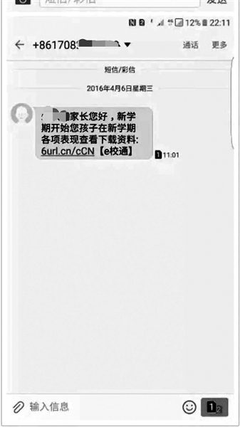 “我是房某某,照片里这几个人你认识吗?http://guo.kr/bd……”今年2月底,事主许先生接到171开头的手机号发送的短信,以为是朋友发来的,便未加思索点击了一下链接。事主不但没有看到照片,反而不停接到空白短信,许先生并未在意。直到当日中午12时许,银行打来电话告知其银行卡被盗刷11万余元,其才知道是诈骗短信,于是立即向警方报案。